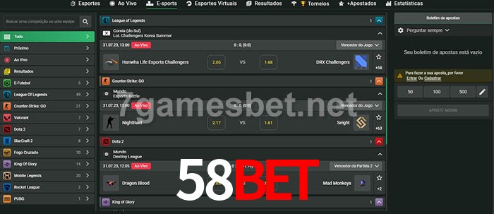 O 58bet oferece uma grande seleção de opções de apostas em e-sports com probabilidades competitivas